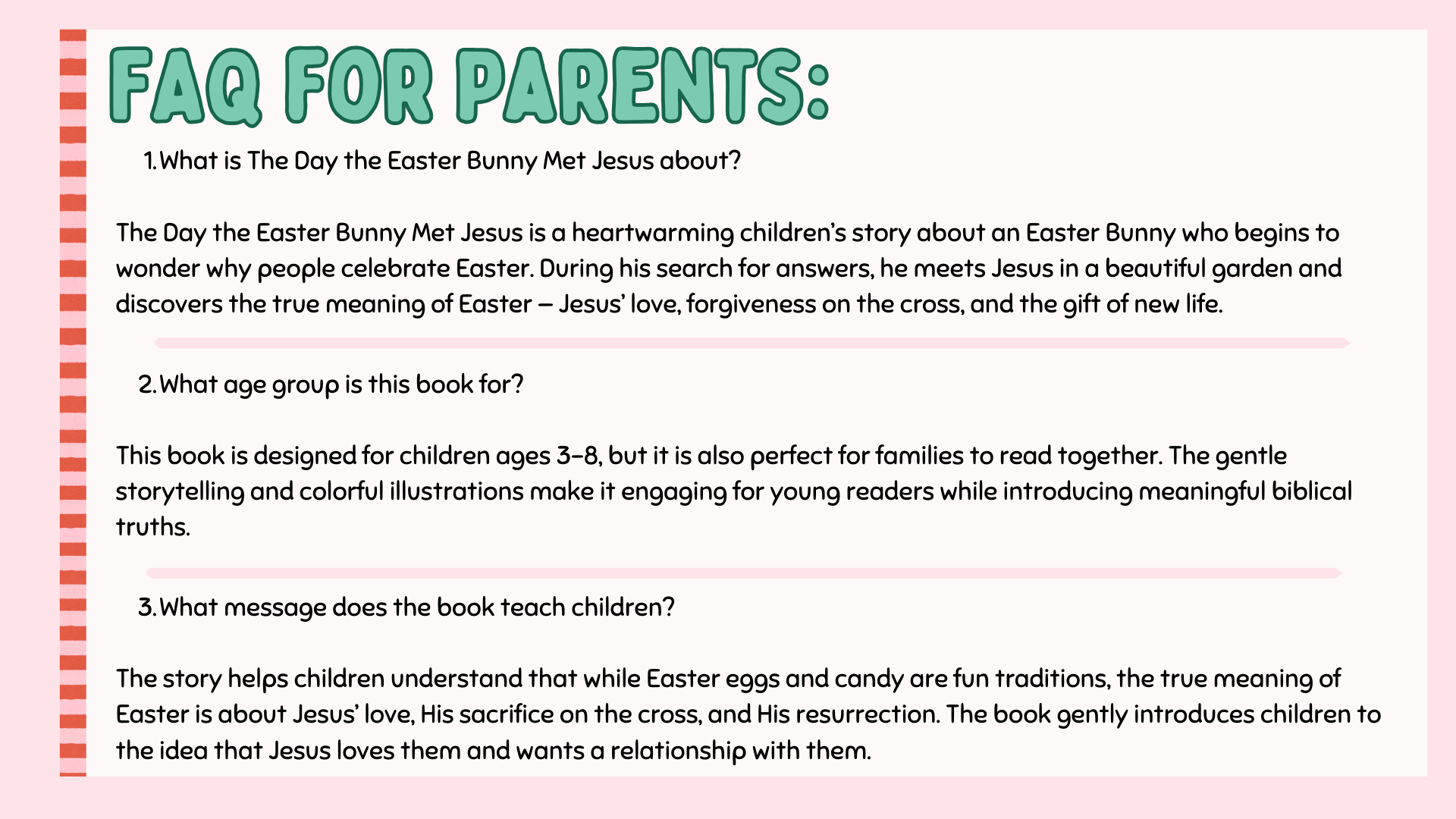 The Day the Easter Bunny Met Jesus is a beautifully illustrated Christian children’s book that helps families share the real story of Easter in a simple, meaningful, and engaging way.